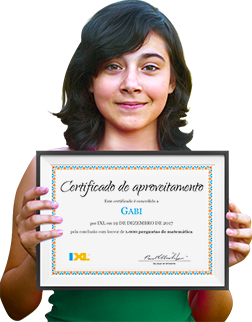 O IXL ajudou no meu aprendizado; eu me divirto enquanto aprendo novos conceitos e ainda ganho recompensas. Adoro sentir aquele brilho quando recebo uma nova recompensa. Valeu, IXL!!!!